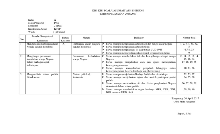 Kisi Kisi Kelas 10 Pkn 2017 Genap Pdf